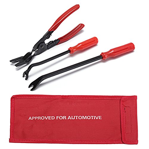 3Pcs Car Door Steel Panel Trim Clips Plier + Fastener Remover Puller Tools