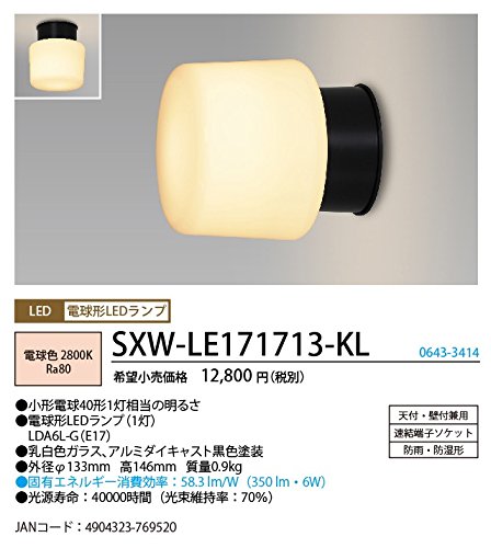 - 備考:天付・壁付兼用、速結端子ソケット、小形電球40形1灯相当の明るさ、防雨・防湿