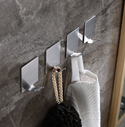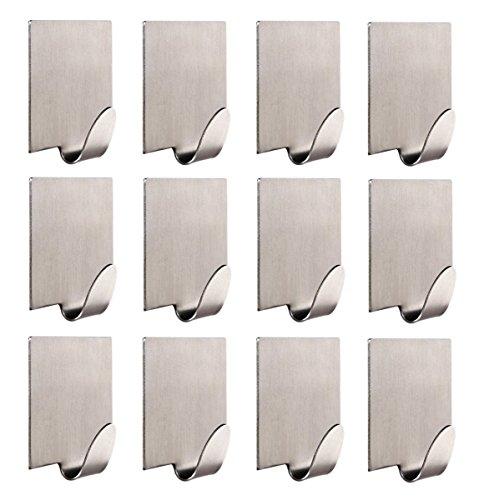Neele 12pcs自己粘着フック3 M Brushed 304ステンレススチールHeavy Dutyコートタオルフックバスルームキッチンのトイレ