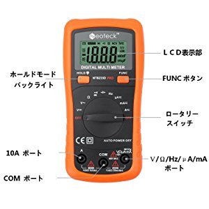 - 電流、電圧、抵抗、コンデンサー、ダイオード測定、導通チェックなどの機能が付きます、幅広いレンジの切り替えられ、あらゆるの状況でも対応できます。