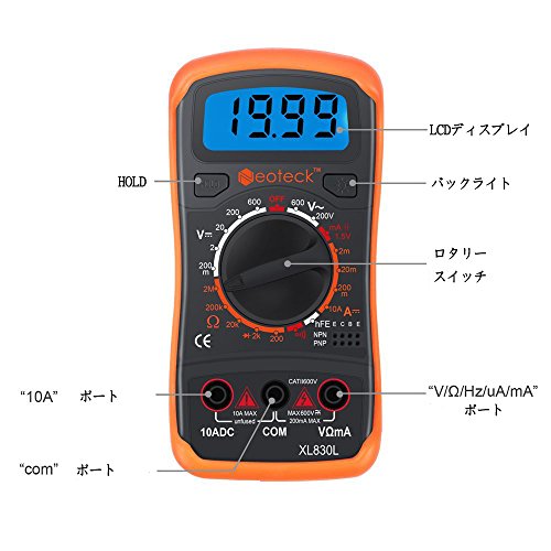 デジタルマルチメーター Neoteck 直流電流 直流交流電圧 抵抗 導通チェック ダイオード 二極管極性 三極管 LCDバックライト 日本語説明書付き 電池付き 18ヶ月保証