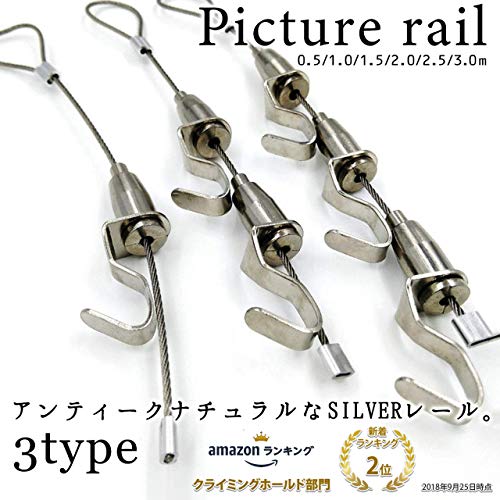 (NESHEXST) ピクチャー レール ワイヤー フック (0.5m 10本 フック1個)