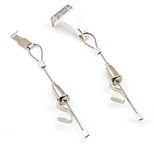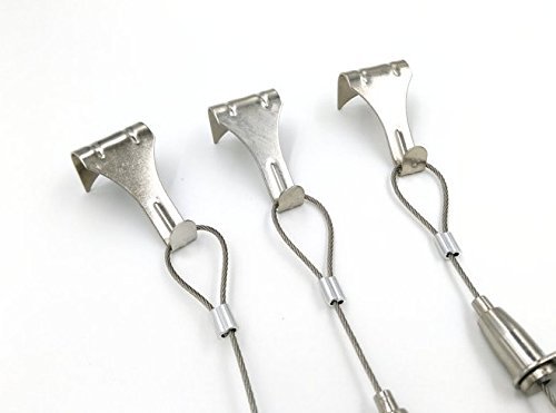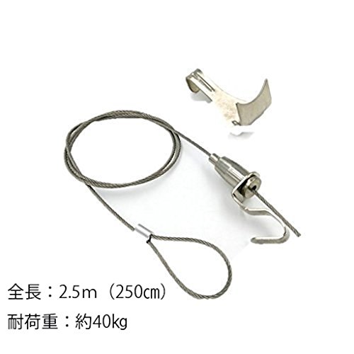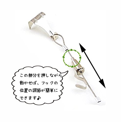 - フック形状の自在金具とワイヤーがセットになった吊下げ金具の汎用補助ツールになります。軽量用で楽々タイプです。輪っかにフックをつけてレールに取り付けたり、輪っかを既存のフックに取り付けることも可能です。