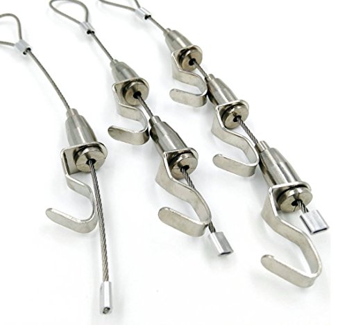 - フック形状の自在金具とワイヤーがセットになった吊下げ金具の汎用補助ツールになります。軽量用で楽々タイプです。輪っかにフックをつけてレールに取り付けたり、輪っかを既存のフックに取り付けることも可能です。