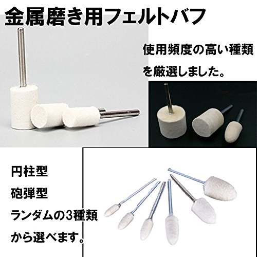 フェルトバフ 羊毛 50個 セット( 5種類×10 ) 精密 金属 磨き 用 (2.35mm軸 円柱型)