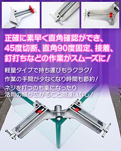 - 45度切断,直角90度固定、接着,釘打ちなどの作業がスムーズ◎正確に素早く直角確認ができるので、作業も楽々です。職業用、職人の方をはじめ、始めたばかりの素人の方までお使いいただいています。