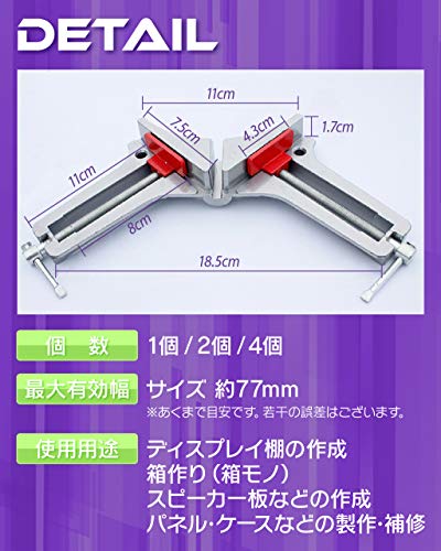 - 木工用の専用工具コーナークランプ 汎用機械部品になります。高品質 高性能 クランプも軽く軽量タイプです。持ち運びもとてもしやすいです。仕事をスムーズにこなしたい…、自宅でDIYをするときに人の助けを借りたい。そんなときにおすすめの補助ツールです。木材の接続等に使用できます。溶接にも適しています。