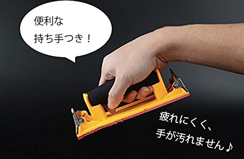 - とって(グリップ)は持ちやすく、またクリップ式なので、サンドペーパーの取り換えがとても簡単です。研磨面積が広く、平滑性が高いので、均一に作業補助、整備、研磨することができ、クロスの下地処理や木材材料(素材)の表面仕上げ、金属磨き、仕上げなどスムーズに作業可能。是非とも1つは欲しい良いツールです♪