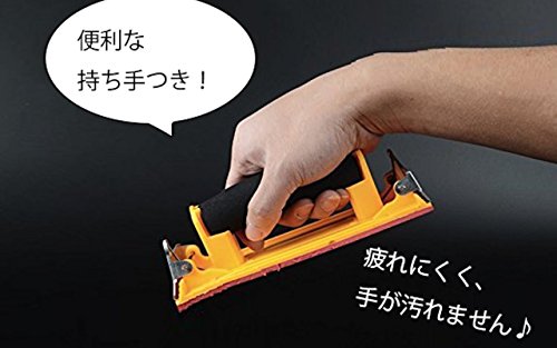 - とって(グリップ)は持ちやすく、またクリップ式なので、サンドペーパーの取り換えがとても簡単です。研磨面積が広く、平滑性が高いので、均一に作業補助、整備、研磨することができ、クロスの下地処理や木材材料(素材)の表面仕上げ、金属磨き、仕上げなどスムーズに作業可能。是非とも1つは欲しい良いツールです♪
