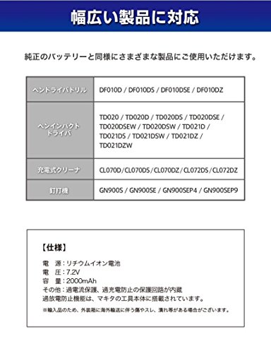 MAKITA マキタ BL7010 7.2V 2000mAh 大容量互換バッテリ 互換電池