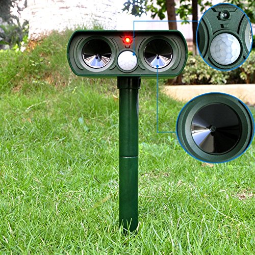 - 強力な退治機能:この動物撃退器は目に見えない赤外線センサーで近寄って来る動物を感知し、警告音を鳴らし、超音波とLEDライトを使うことで恐怖感を与え撃退します。