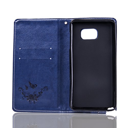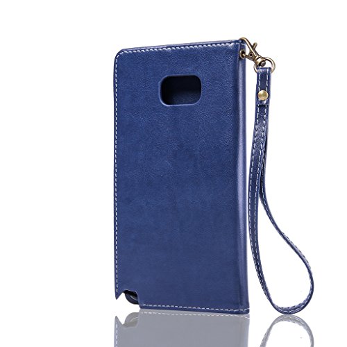 NEXCURIO Samsung Galaxy Note 5 手帳型ケース 耐衝撃 PUレザー マグネット式 カード収納 ポケットホルダー付き スタンド機能付き サムスンギャラクシーNote5ケース 手帳型 携帯電話カバー 保護ケースバー おしゃれ (紺)