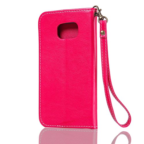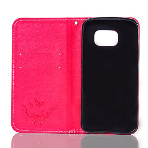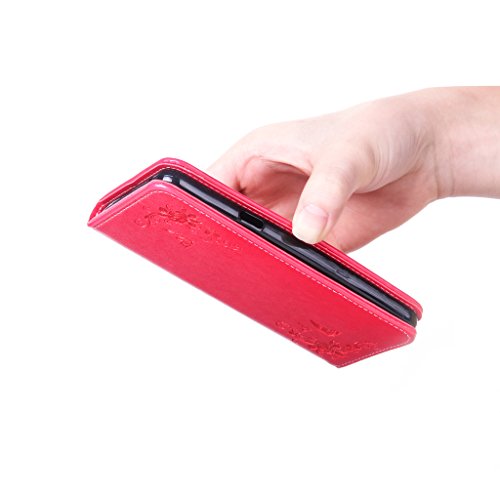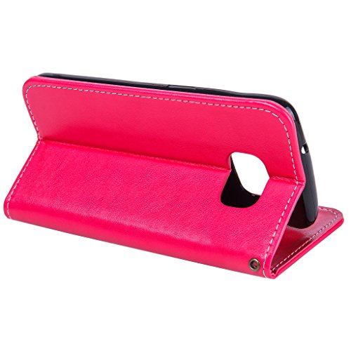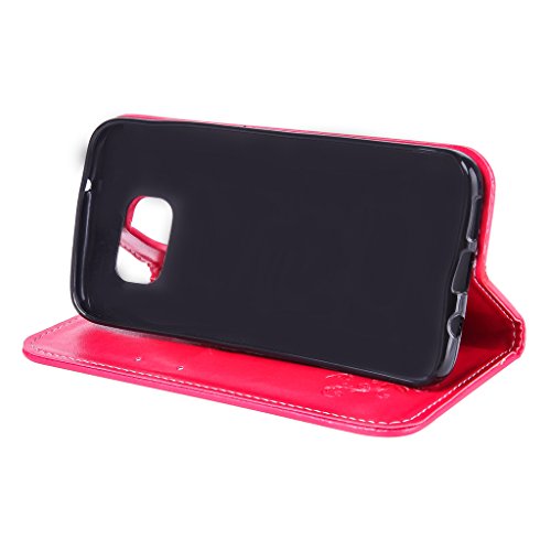 NEXCURIO Samsung Galaxy S7 Edge 手帳型ケース 衝撃吸収 耐摩擦 【強化ガラス液晶保護フィルム贈呈】 カード収納ホルダー付き 横置きスタンド機能付き マグネット式 サムスンギャラクシーS7エッジ ケース 手帳型 PUレザー 保護ケース 携帯電話カバー おしゃれ (赤)