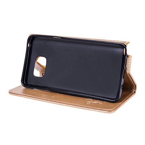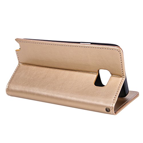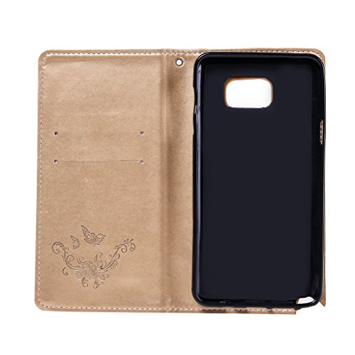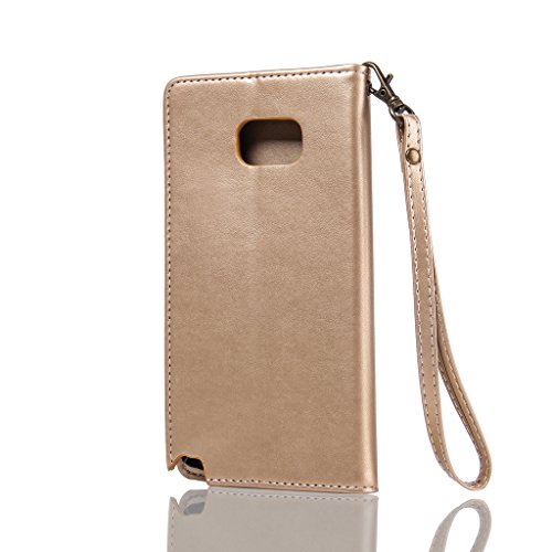NEXCURIO Samsung Galaxy Note 5 手帳型ケース 耐衝撃 PUレザー マグネット式 カード収納 ポケットホルダー付き スタンド機能付き サムスンギャラクシーNote5ケース 手帳型 携帯電話カバー 保護ケースバー おしゃれ (金)