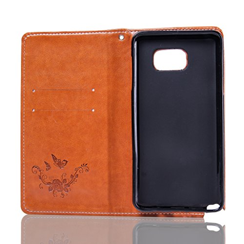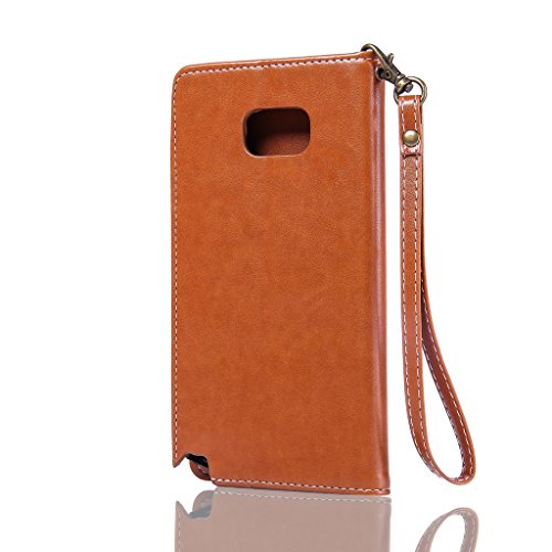 NEXCURIO Samsung Galaxy Note 5 手帳型ケース 耐衝撃 PUレザー マグネット式 カード収納 ポケットホルダー付き スタンド機能付き サムスンギャラクシーNote5ケース 手帳型 携帯電話カバー 保護ケースバー おしゃれ (茶)
