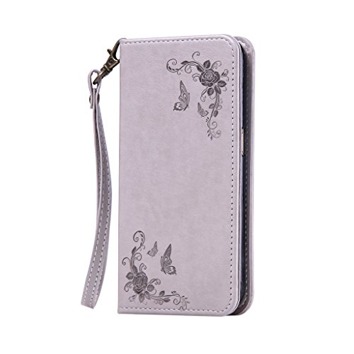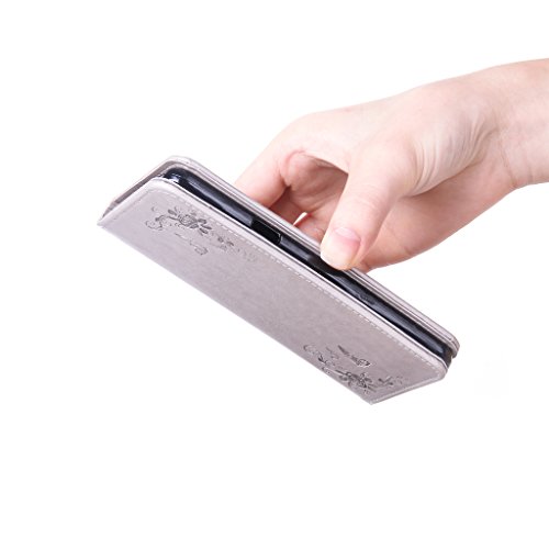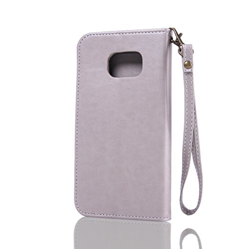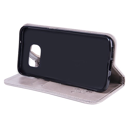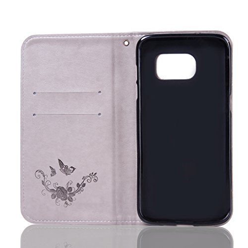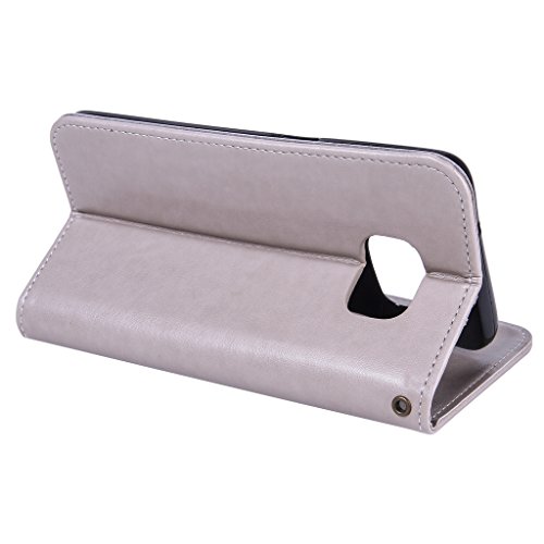 NEXCURIO Samsung Galaxy S7 Edge 手帳型ケース 衝撃吸収 耐摩擦 【強化ガラス液晶保護フィルム贈呈】 カード収納ホルダー付き 横置きスタンド機能付き マグネット式 サムスンギャラクシーS7エッジ ケース 手帳型 PUレザー 保護ケース 携帯電話カバー おしゃれ (グレー)