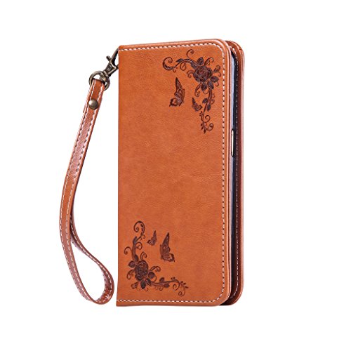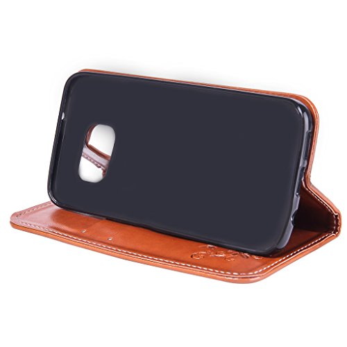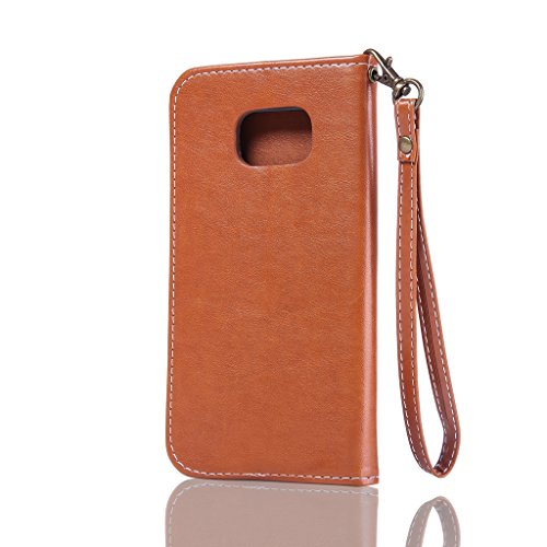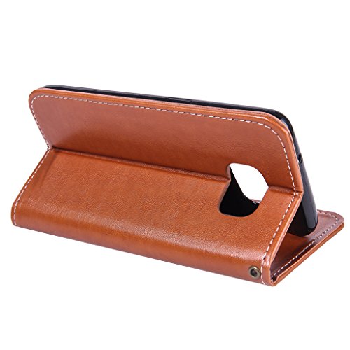 NEXCURIO Samsung Galaxy S7 Edge 手帳型ケース 衝撃吸収 耐摩擦 【強化ガラス液晶保護フィルム贈呈】 カード収納ホルダー付き 横置きスタンド機能付き マグネット式 サムスンギャラクシーS7エッジ ケース 手帳型 PUレザー 保護ケース 携帯電話カバー おしゃれ (茶)