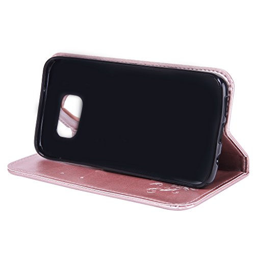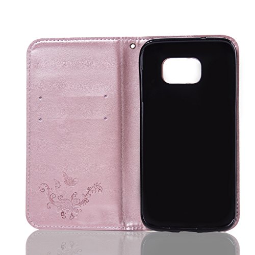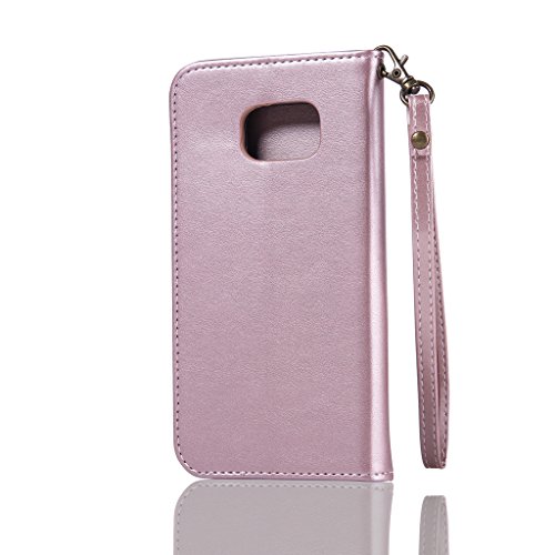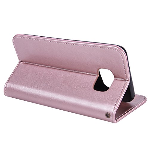 NEXCURIO Samsung Galaxy S7 Edge 手帳型ケース 衝撃吸収 耐摩擦 【強化ガラス液晶保護フィルム贈呈】 カード収納ホルダー付き 横置きスタンド機能付き マグネット式 サムスンギャラクシーS7エッジ ケース 手帳型 PUレザー 保護ケース 携帯電話カバー おしゃれ (ローズゴールド)
