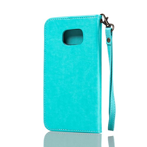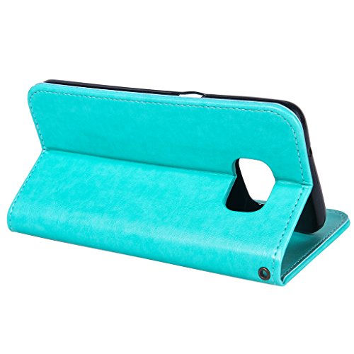 NEXCURIO Samsung Galaxy S7 Edge 手帳型ケース 衝撃吸収 耐摩擦 【強化ガラス液晶保護フィルム贈呈】 カード収納ホルダー付き 横置きスタンド機能付き マグネット式 サムスンギャラクシーS7エッジ ケース 手帳型 PUレザー 保護ケース 携帯電話カバー おしゃれ (緑)
