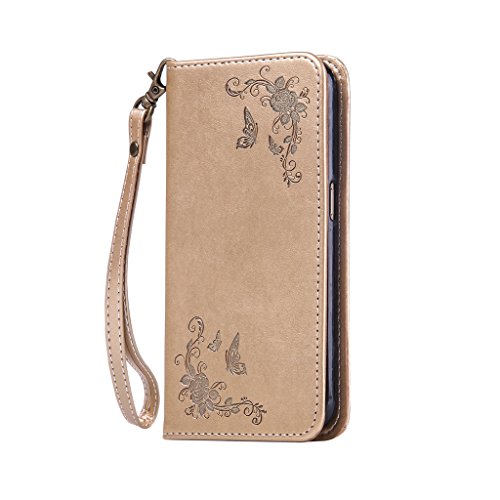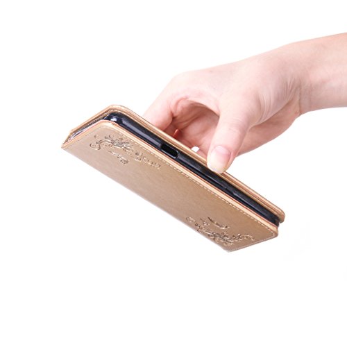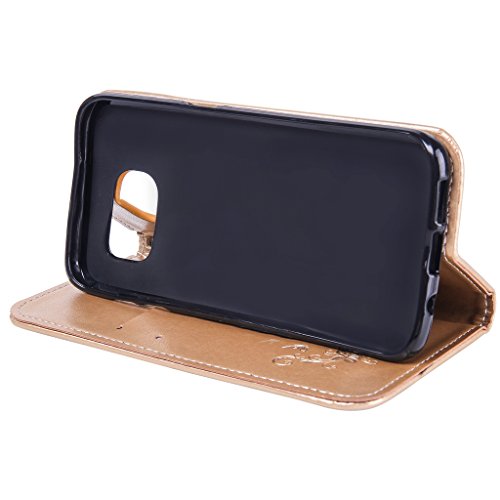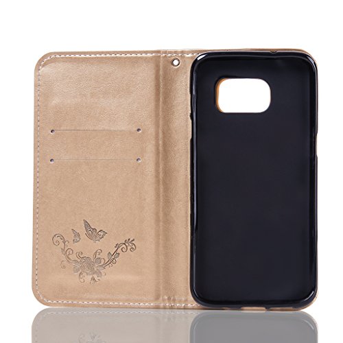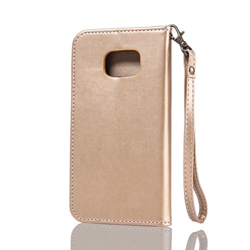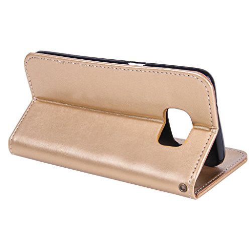 NEXCURIO Samsung Galaxy S7 Edge 手帳型ケース 衝撃吸収 耐摩擦 【強化ガラス液晶保護フィルム贈呈】 カード収納ホルダー付き 横置きスタンド機能付き マグネット式 サムスンギャラクシーS7エッジ ケース 手帳型 PUレザー 保護ケース 携帯電話カバー おしゃれ (金)
