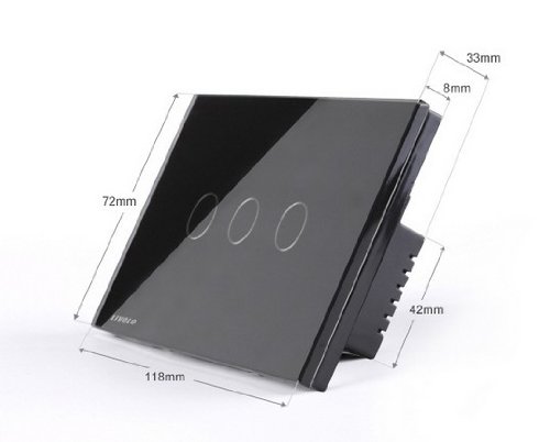 米国/ AU標準、スマートホーム、ブラックパールクリスタルガラスパネル、vl-c303r-82、3ギャング1 Way、ワイヤレスリモートタッチ画面ライトスイッチでLEDインジケータ