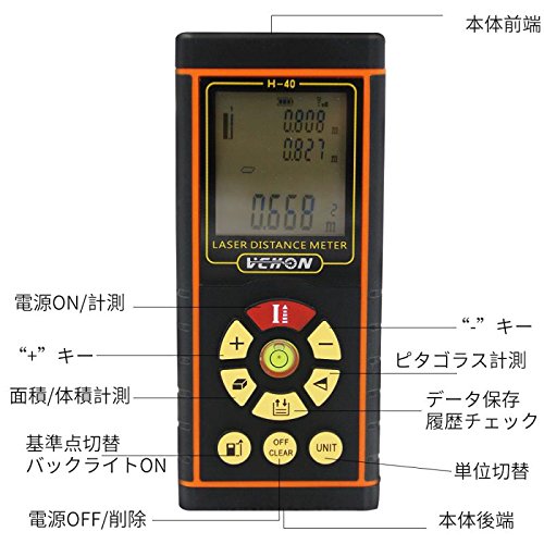 レーザー距離計 最大測定距離40m 測定精度±1mm 携帯型 距離・面積・体積・ピタゴラス計測 加算・減算・連続計測可能 バックライト付き IP54防塵・防水規格 工業用/家庭用 【正規品】