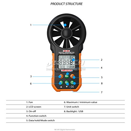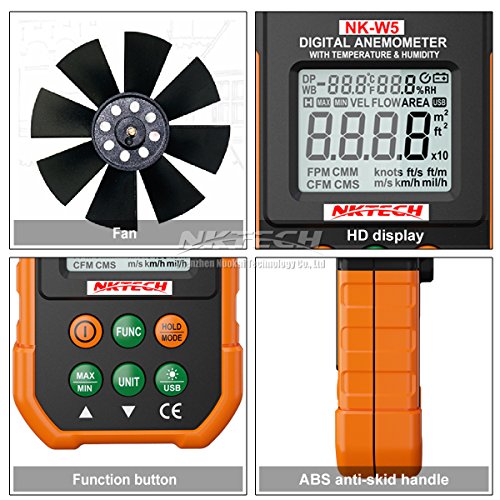 - nktech nk-w5はデジタル風速計は、周囲温度、湿度、露点温度、湿球温度、風速、風量の測定に。