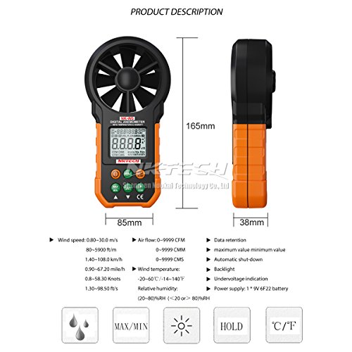 NKTECH nk-w5デジタル風速計風メーター速度空気フローボリューム周囲光と温度湿度USBデータアップロードバックライト9999カウントLCDデュアルラインデジタル表示+ tl-1 Screwdriver