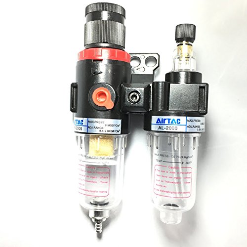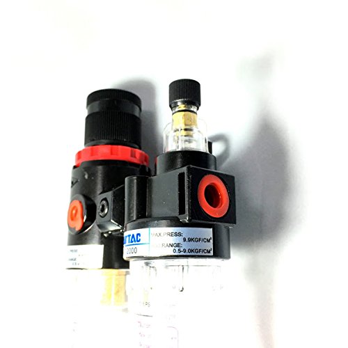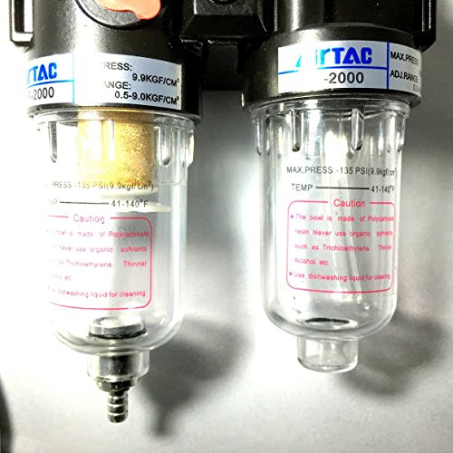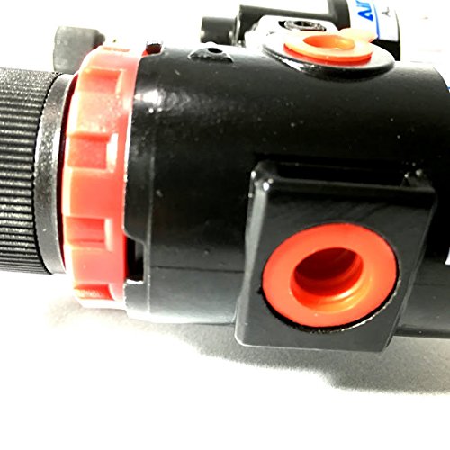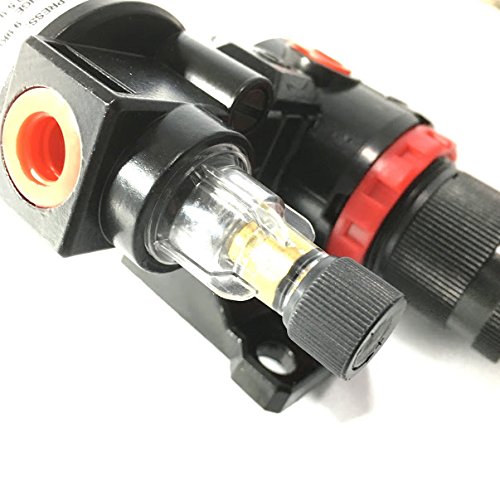 エアーコンプレッサーの圧縮空気から発生するドレン(水滴)を空気と水に分離し、使用空気圧力の調整も出来るエアーフィルター/レギュレーターです。 [圧力調整範囲] 0.5~8.5kg/cm2 [最高入力空気圧力] 9.5kg/cm2 [インレットサイズ] 1/4" [付属品] 固定用ブラケット ■特にサンドブラスト作業をする際は、水滴による砂の詰まりを防ぐ最も必要な商品です。