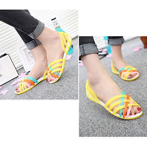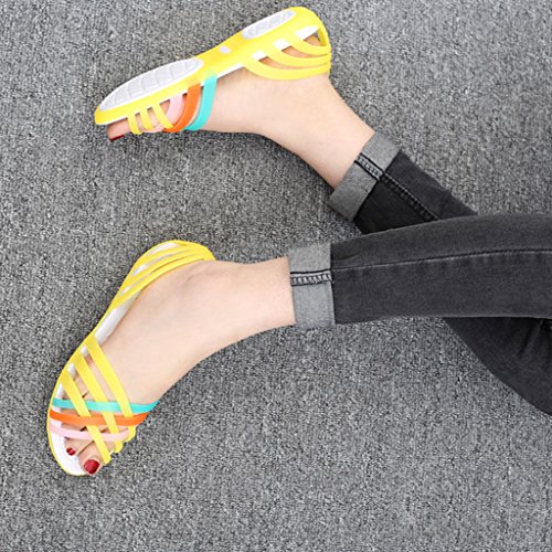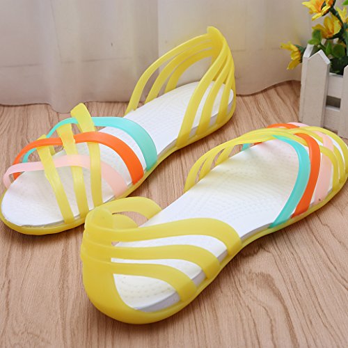 nnda Co夏フラット魚口サンダル滑り止めレインボーミックスカラーゼリー靴女性用, 1セット 40 イエロー NNDA CO