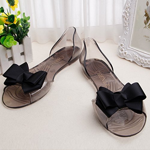 nnda Co蝶結び魚ヘッドソフトソールサンダル透明ゼリースリッポンビーチスリッパ、PVC 40 ブラック NNDA CO