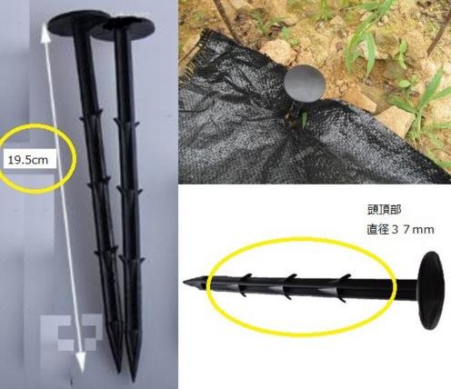 - 雑草の発生を抑える防草シート、家庭菜園などの野菜作りなどのマルチングの固定に便利なロングピンです。