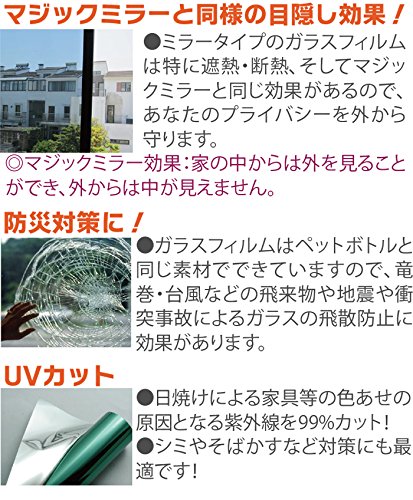 窓ガラス フィルム 断熱 UV 99%カット 6色選択 窓 シート ミラー 日よけ ガラスフィルム 遮熱 装飾 曇りガラス 飛散防止 紫外線 カット 日焼け 防犯 地震対策 サンルーム (ミラーシルバー, 0.5m×5m)