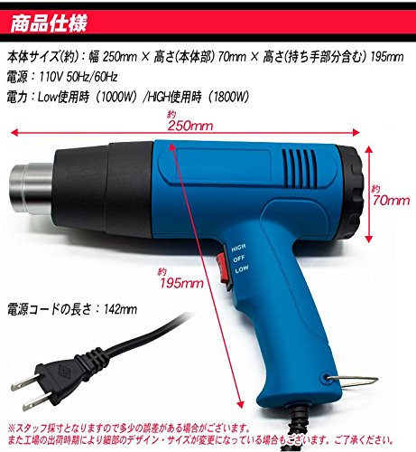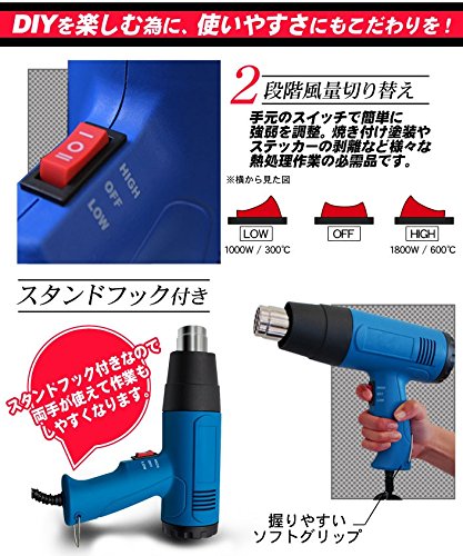 ヒートガン 風量 切替 機能 付き 2段階 ホットガン 1800W 110V 50Hz-60Hz HT1800 (イエロー)