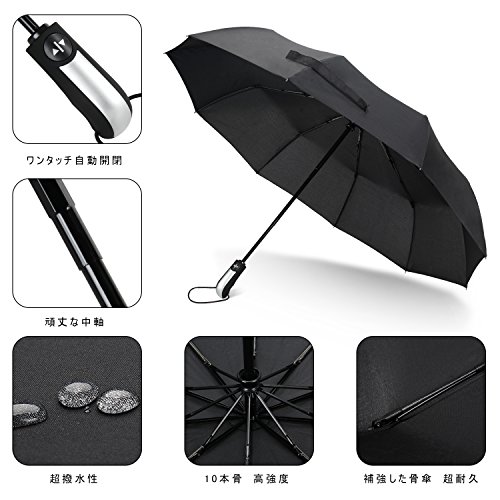 - ☂【10本傘骨耐強風性】☂:10本頑丈なスチール製の傘骨を採用してので、普通の8本アルミニウム合金製の傘より強い耐風性を持つ設計になっています、裏返し心配はありません。また重量は鉄製の傘より結構軽いです。梅雨の時期に使われても錆びにくくて、強風や台風を完璧に防ぎ止めることで、お出かけを確保できます。