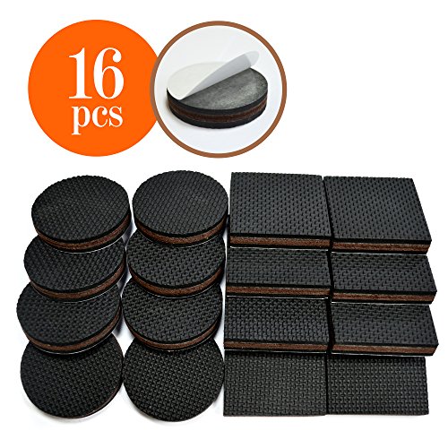 - 完璧にご満足いただけるための16枚の2インチ滑り止め家具パッド (正方形8枚、円形8枚)。-