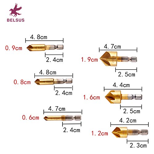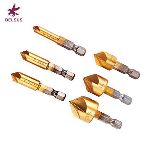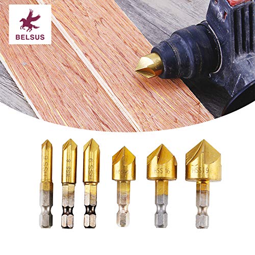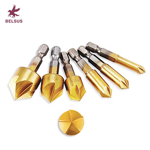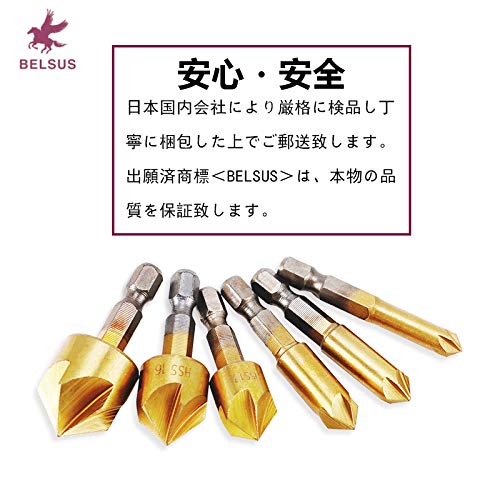 六角軸 面取りカッター バリ取り ドリルビット 5枚刃 [ 電動ドリル 高速度鋼工具 6-19mm ] 6本組セット【BELSUS正規品】