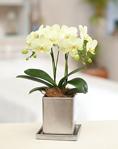花を贈る!椎名洋ラン園の胡蝶蘭 (イエロー) 2本立ち クローム鉢 (生花)