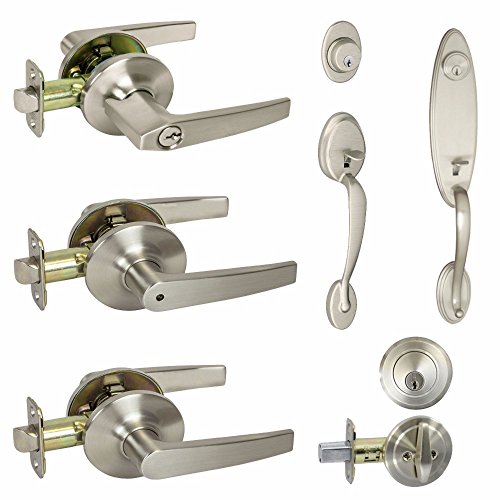 サテンニッケルドアレバーロックエントリノブプライバシー寝室クローゼットハードウェア無料keyed alike – は誇りを持って無料の標準キーキーの追加すべて機能が導入されています。サテンニッケル仕上げリバーシブルの左右の手のドアでプロ・グレード品質ドアノブリバーシブルに左右の手のドアで適合ドア1 – 3 / 8 "1 – 3 / 4 "厚ラッチ調節が可能です2 – 3 / 8 " or 2 – 3 / 4センチ対応の丸型がラッチストライキプレートが満たしANSI等級3仕様2キーを持つキーの形状が注文生涯保証:通路=一般的な定義はロックされません両側に表示されます。プライバシー=片側にロック。ダミー=の他の解決がドアのラッチ方法が採用されています。エントリ(キー) =ロック内部から手動で使用されている場合は、キーとするexterior ]を選択します。2つの鍵が含まれています。handleset (外部) =通常、前面ドアエントリドアに使用ます。インテリア用トリム・ノブと単気筒デッドボルトと2つの鍵が含まれています。handleset (トリム) =の内側のハンドルに合わせて内部ノブまたはレバーです。単気筒デッドボルト=から手動でのロックの内側と使用されている場合は、キーが含まれています。2つの鍵が含まれています。