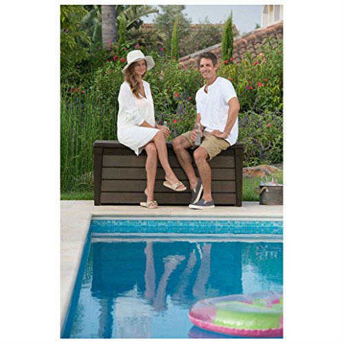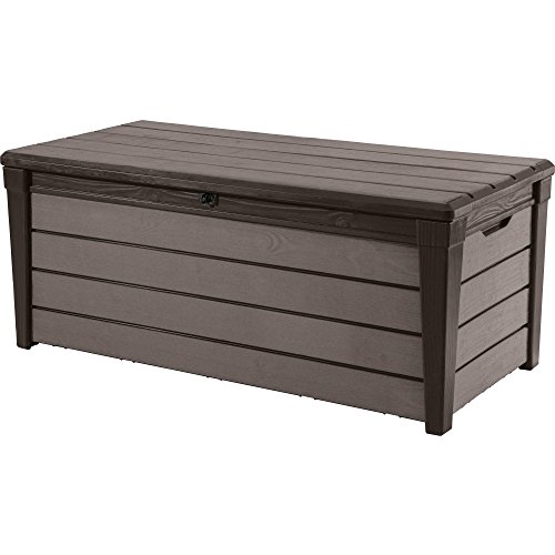 Keter Brushwood 120-galアウトドアストレージデッキボックス、エスプレッソブラウン