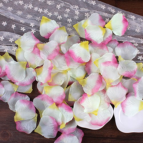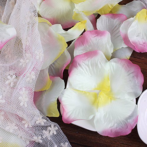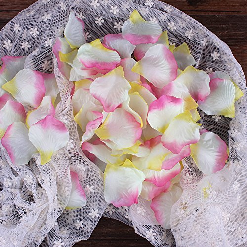 NSSTARシルクローズ花びらウェディングイベントと紙吹雪ブライダルパーティーフラワーガール装飾用(ホワイト+ピンク+イエロー, 000個)