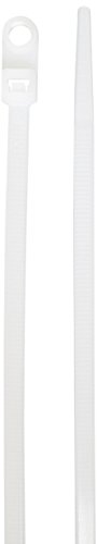2-1/4-inches bundle diameter. NSI Standard mountable cable ties are manufactured from natural Nylon 66 and come complete with a mounting hole. Designed for continuous use from -40 to 185 degrees F (-40 to 85 degrees C). 94V-2 flammability rating. 50-pounds tensile strength. 2-1/4-inches bundle diameter. 0.181-inches mounting hole diameter. Measures 8-inches length by 0.165-inches width. Available in natural color. UL recognized.