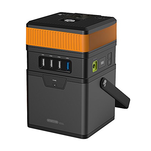 - 大容量のポータブル予備バッテリー:本体はポータブルですが、170.1Wh / 47250mAhの大容量で家庭用の予備バッテリーとして不可欠なものとなっています。本体にはUSB 4ポート(普通のポートは3個 5V /2.4A ;QC 2.0ポート1個5V/3A)と3 DC出力ポート(12V * 2 / 19V*1)付きで、またインバーターの部分には115V ACコンセントがあります(最大100Wまでのデバイスに充電できる)。ほこりの侵入を防止するため、オレンジのベルトも用意しておきました。