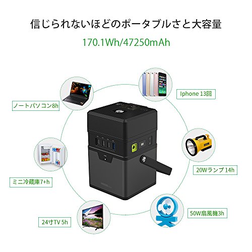 ポータブル 電源 170.1Wh/47250mAh 大容量 キャンプ バッテリー USB& DC& AC 出力対応 取り付け インバーター、LED電量ディスプレイ、ほこり防止ベルトを搭載する 緊急・災害・停電時の家庭 バックアップ 用 電源 3つの充電方法