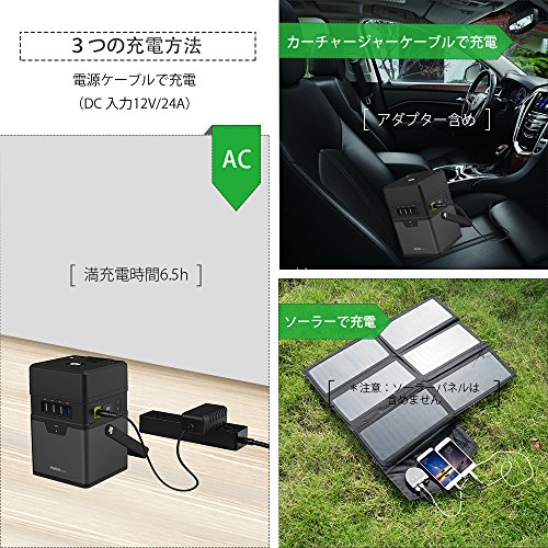 - 3つの充電方法:ACアダプター(12V-24V)、カーチャージャー(12V)、ソーラーパネル。(*ソーラーパネルは含まれていないことに注意してください)。パッケージ内容:1 x 170.1Wh/47250mAhインバーター・1 x ACアダプター・1 x DC充電ケーブル・10 xノートパソコンアダプター・1 xカーチャージャー・2 x交換可能ヒューズ
