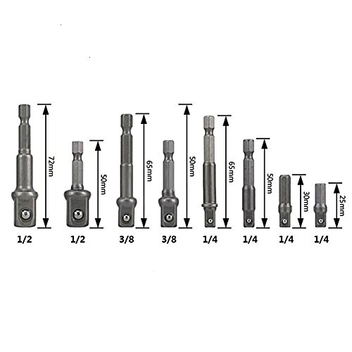 NUZAMAS 8個のドライバソケットビットアダプタセットドリルナット六角シャンクドリルアダプタ1/4 "、3/8"、1/2 "パワードリル延長バーメトリックソケットレンチネジ