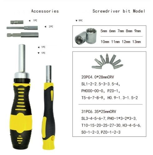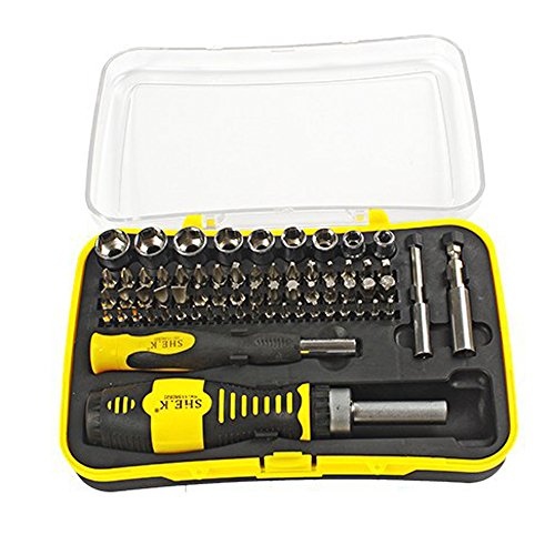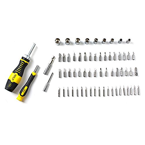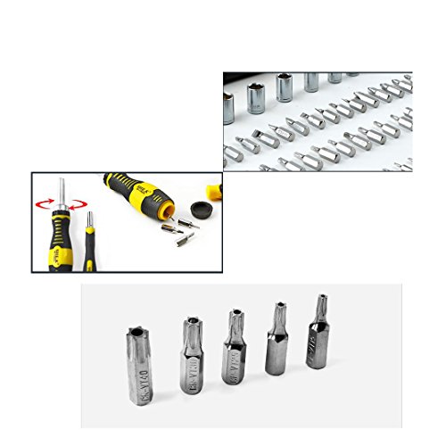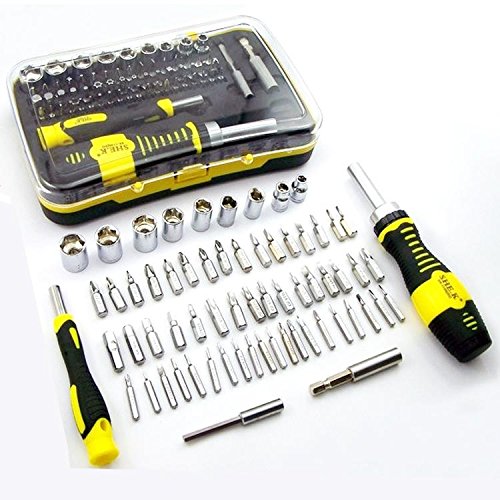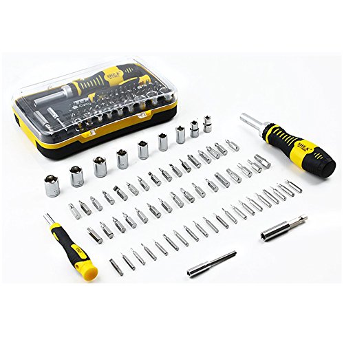 - 65 in 1 Precision Screwdriver Setは、一般的なノートパソコン、携帯電話、ゲーム機、その他の電子機器に対応するように設計されています。クロームバナジウム鋼製の64種類のビットとソケット、2本のハンドルと2本の延長バー