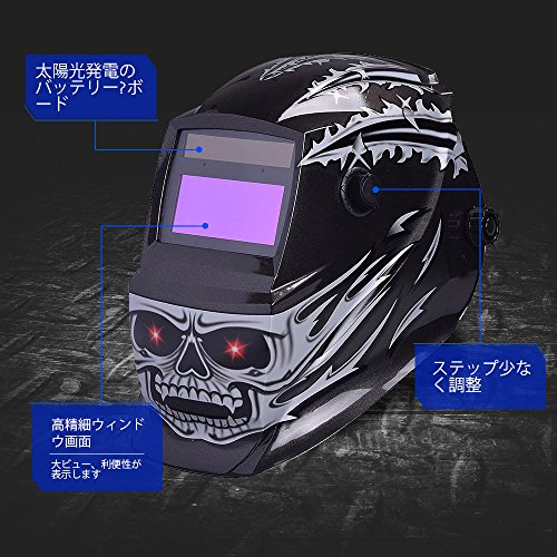 Nuzamas 太陽電源自動暗く溶接ヘルメット マスク溶接顔保護アーク Tig Mig 研削プラズマ切断用調節可能な日陰範囲 DIN4/9-13 UV/IV 保護 DIN16 スカル パターン