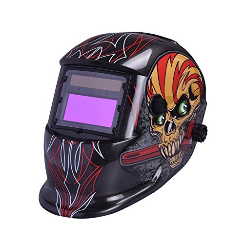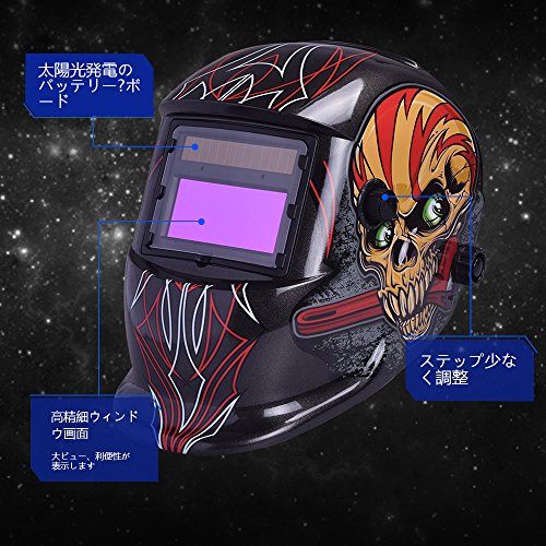 Nuzamas 太陽電源自動暗く溶接ヘルメット マスク溶接顔保護アーク Tig Mig 研削プラズマ切断用調節可能な日陰範囲 DIN4/9-13 UV/IV 保護 DIN16 クールなスカル