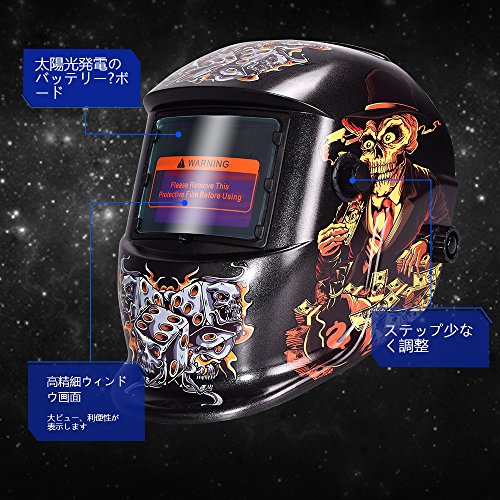 Nuzamas 太陽電源自動暗く溶接ヘルメット マスク溶接顔保護アーク Tig Mig 研削プラズマ切断用調節可能な日陰範囲 DIN4/9-13 UV/IV 保護 DIN16 火スカル